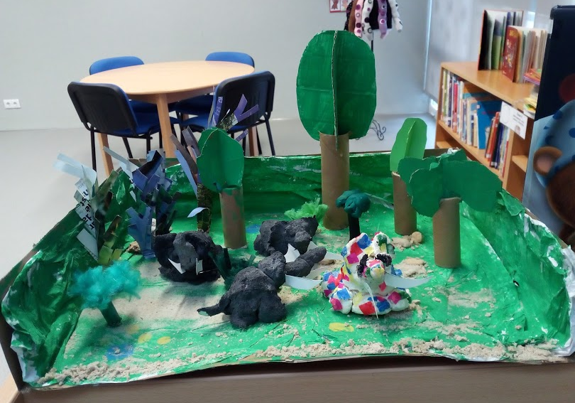 Ao longo da semana, os alunos têm a possibilidade de poder retratar a história dinamizada na leitura partilhada, pintando imagens sobre a mesma, para a compor num painel e ser exposto no mural da Leitura Partilhada em exposição na BE.