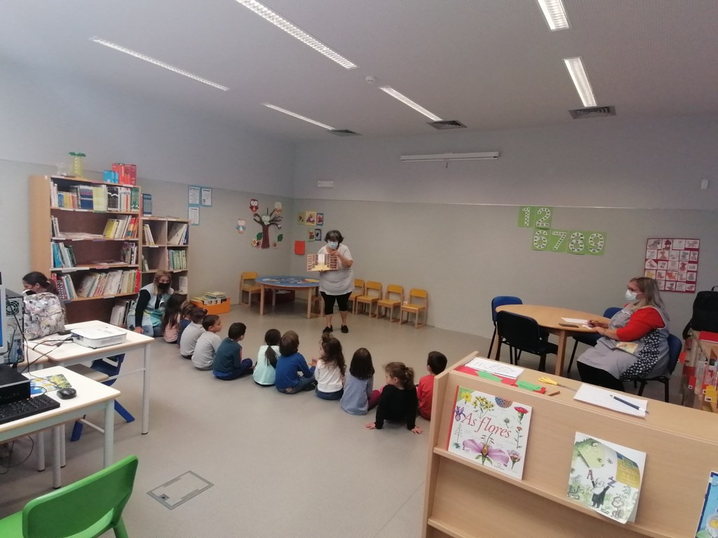 Os alunos, estão desta forma, a retomar o hábito de frequentar a Biblioteca Escolar e a familiarizar-se com as histórias e a leitura.