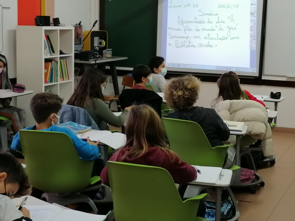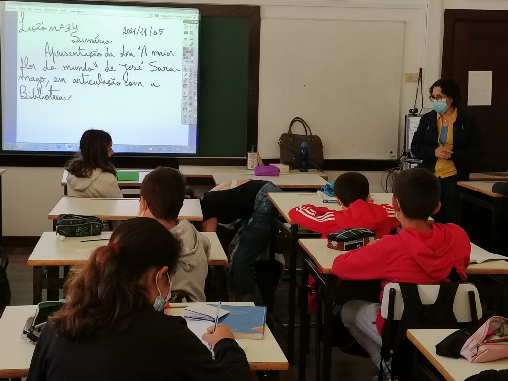 Assim, e ainda em articulação com o Centenário de José Saramago, tem decorrido nas turmas de 5º e 6º ano, a apresentação/exploração da obra, A Maior Flor do Mundo do autor. Tem sido relevante o interesse dos alunos pela obra, uma vez que José Saramago nos/lhes fala da sua dificuldade em escrever histórias para crianças… logo, apela à criatividade, ao jeito e à paciência para lidar com as palavras certas, que possam de alguma forma ir ao encontro do seu interesse e que possam fazer com que as crianças criem pela leitura de cada história, novos mundos dentro de si. Uma história, onde, segundo ele, será apenas um simples resumo, apelando a cada um de nós para que um dia a possamos contar de maneira mais linda e mais criativa.