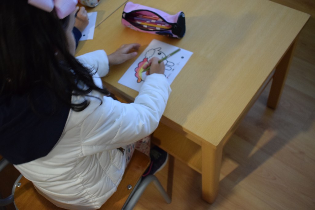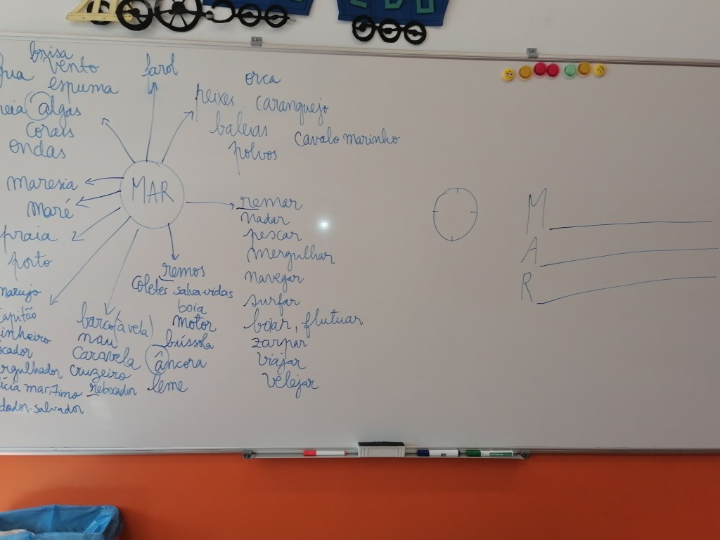 A professora bibliotecária, apoiou a atividade da turma, tendo os alunos ilustrado imagens relativas à obra e referido alguns dos seus medos.