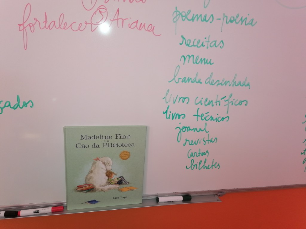 Em Janeiro, depois de umas férias prolongadas, até se verificaram alguns avanços na leitura e na escrita. Foi trabalhada a obra – Madeline Fiin – Cão da Biblioteca -, reforçando através do tema, a leitura e a escrita, tendo os alunos criado e lido/partilhado a sua própria história.