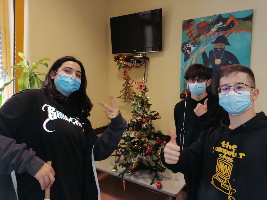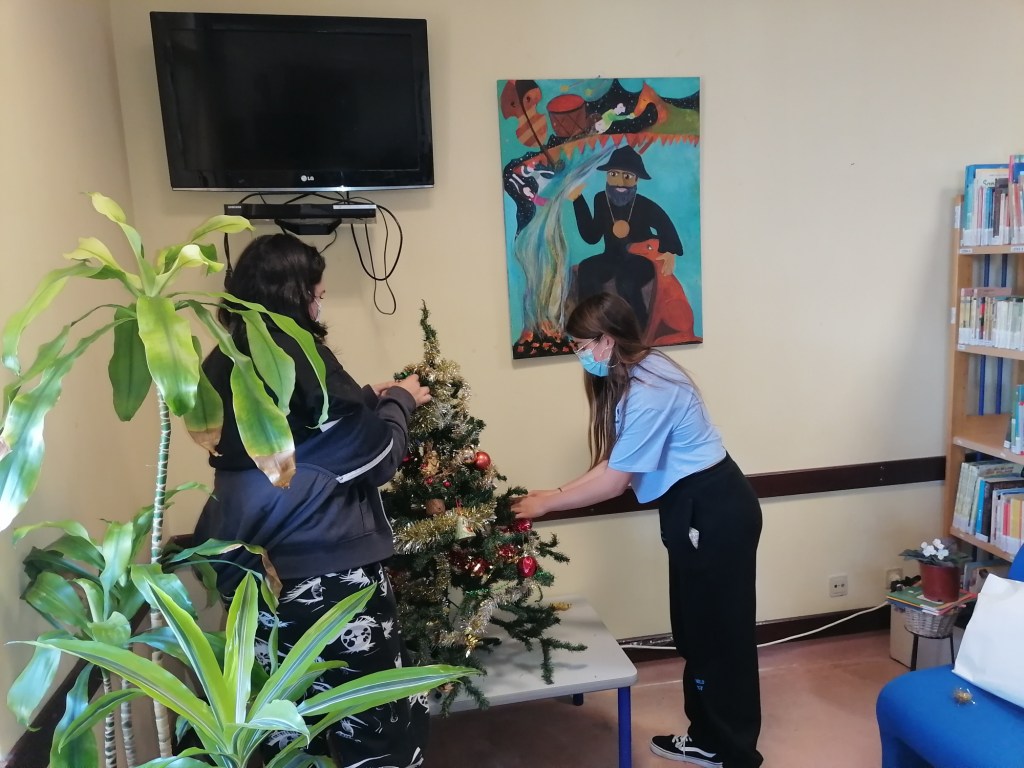 Alguns alunos da turma A do 9º ano, decidiram participar na ornamentação da Biblioteca Escolar, com a habitual árvore de Natal, deixando a sala, com um ar festivo e natalício.