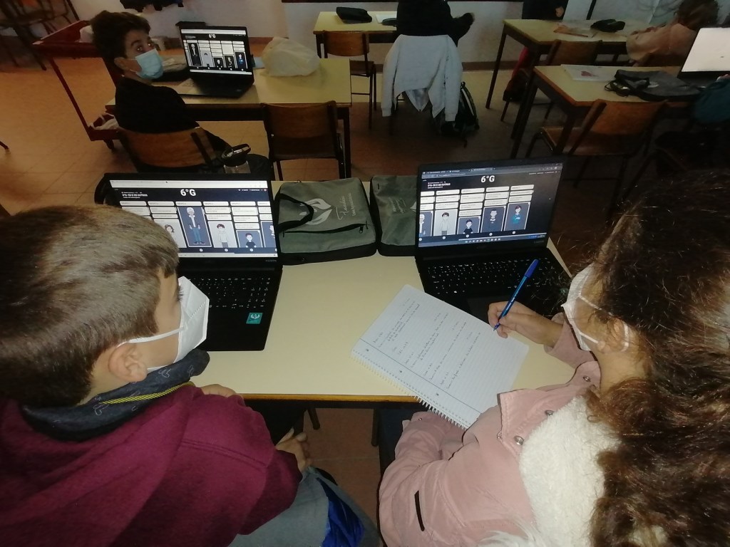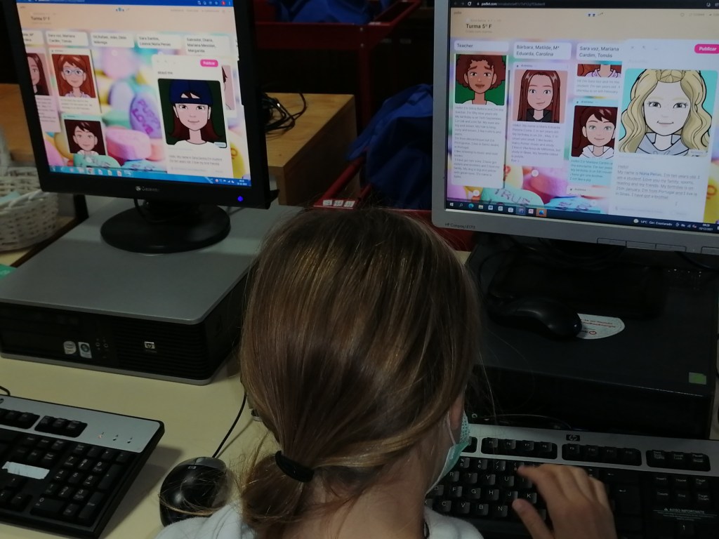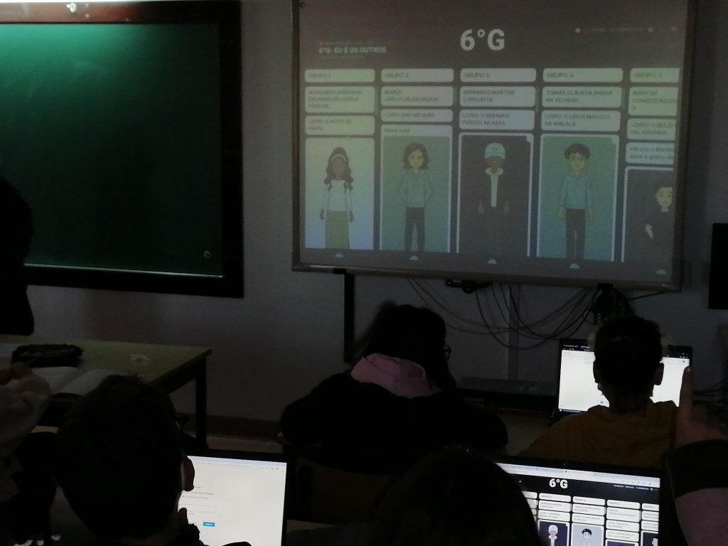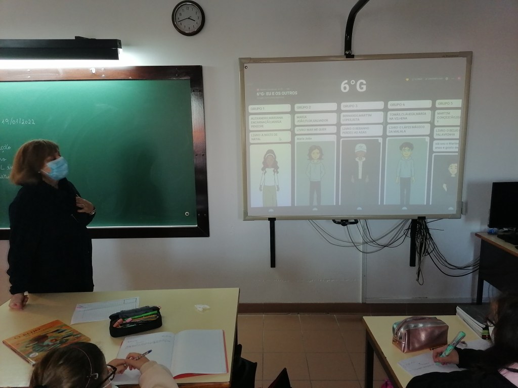 Na turma G de 6º ano, na disciplina de Português, da responsabilidade da docente Anabela Nunes, foram também trabalhadas as competências digitais com os alunos, tendo sido utilizadas as ferramentas, Pixton, na construção de Avatares e Padlet. A docente Fátima Nunes, responsável pela Biblioteca Escolar, cooperou/articulou com a disciplina, no sentido de desenvolver uma atividade de leitura, alusiva a diversos autores, tendo estado presente nesse apoio também em algumas aulas.