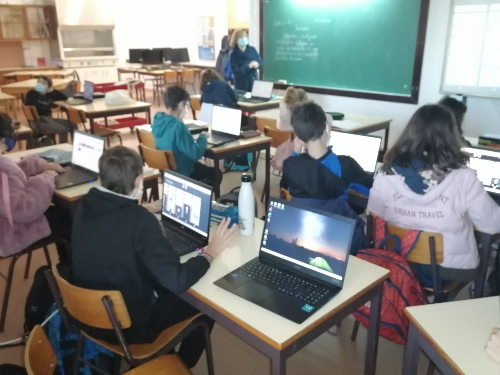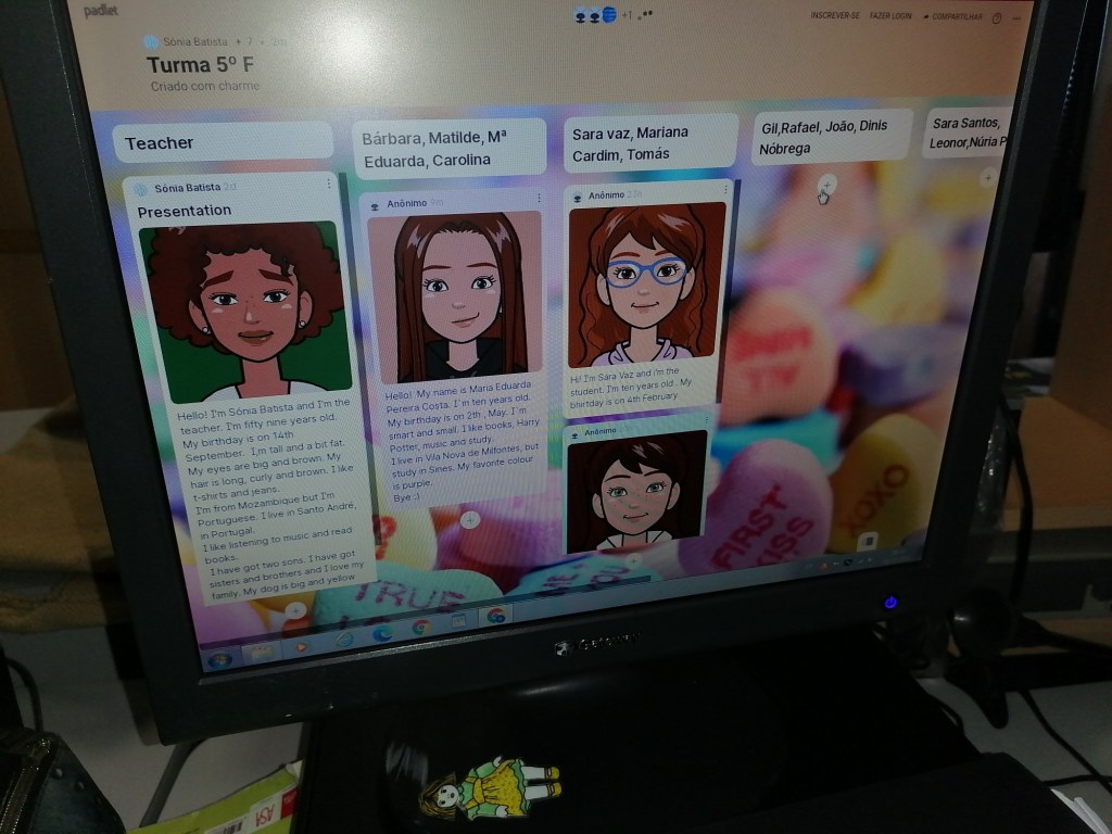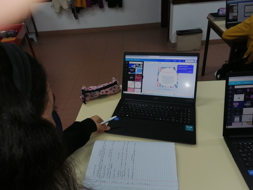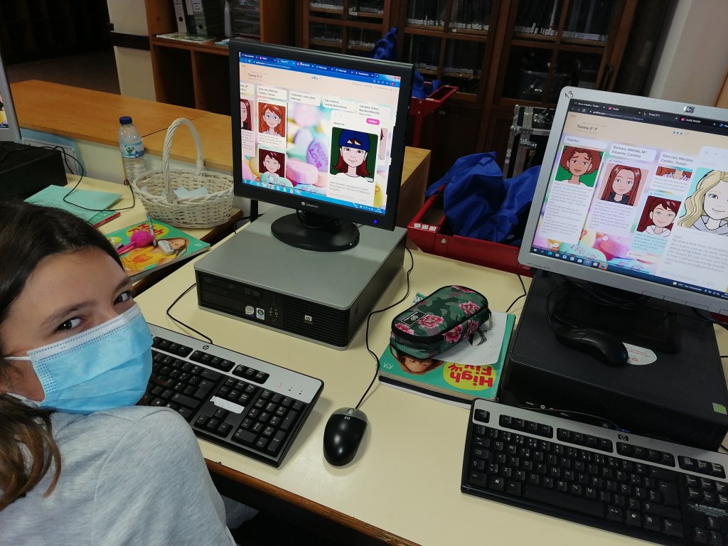 Na turma G de 6º ano, na disciplina de Português, da responsabilidade da docente Anabela Nunes, foram também trabalhadas as competências digitais com os alunos, tendo sido utilizadas as ferramentas, Pixton, na construção de Avatares e Padlet. A docente Fátima Nunes, responsável pela Biblioteca Escolar, cooperou/articulou com a disciplina, no sentido de desenvolver uma atividade de leitura, alusiva a diversos autores, tendo estado presente nesse apoio também em algumas aulas.