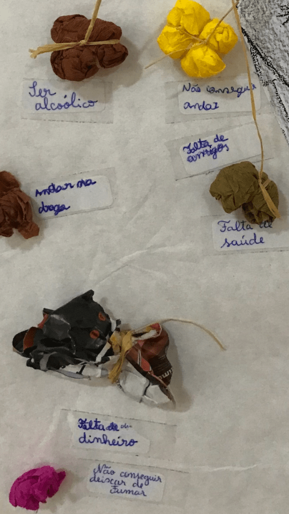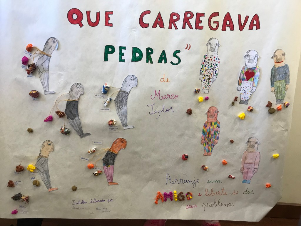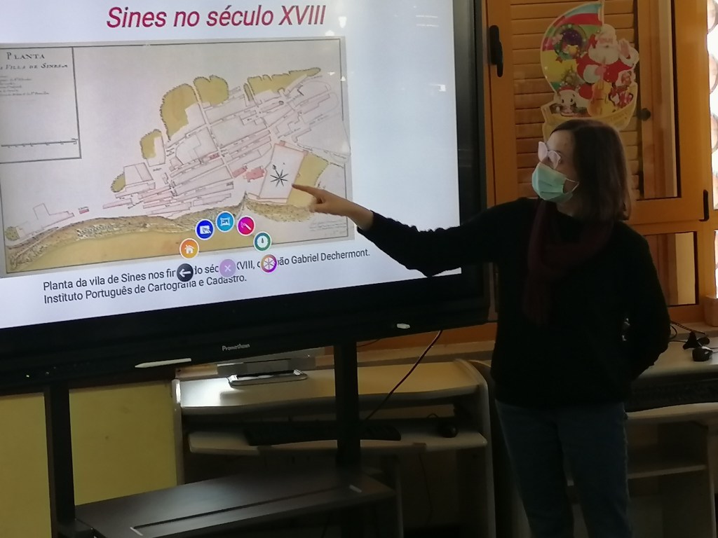 Após terem trabalhado a obra, responderam ao guião de leitura orientada no Padlet. Durante a aula a professora de Português demonstrou/partilhou a apresentação escrita dos alunos, esclarecendo dúvidas e indicando processos de melhoria para alguns casos. Verificou-se um espírito de muito interesse e entreajuda entre o grupo, no manuseamento das ferramentas digitais.