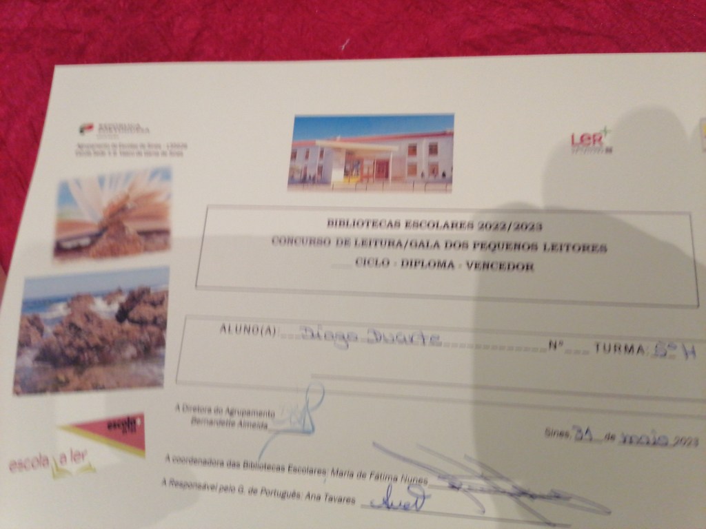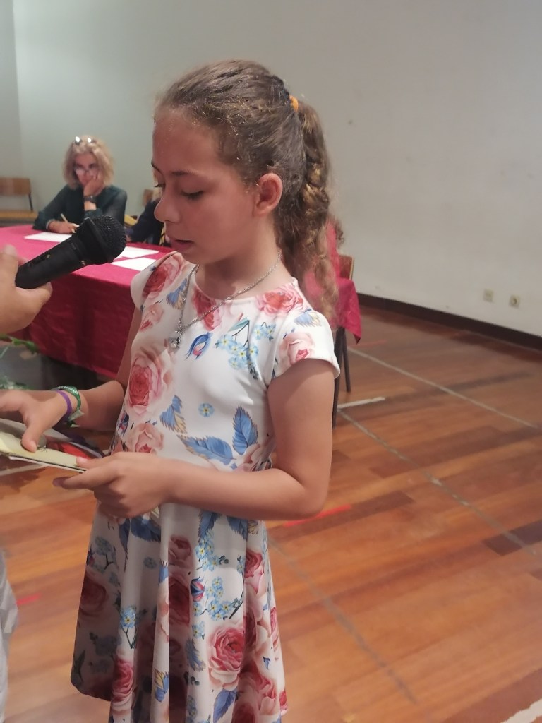 Parabéns, pelo empenho e exemplo de motivação, à pequena Princesa, Carolina Guerrinha, que representou o 1º ano da Escola nº2; ao Mateus Teixeira, do 6º G e à Laura Brissos, do 7º C, da Escola Vasco da Gama de Sines.