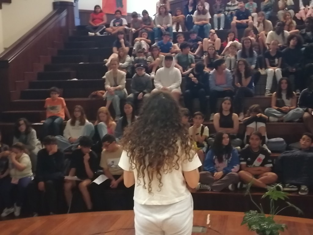 De realçar a grande interação e proximidade da autora com os alunos, ao longo da sessão e a forma interessada de todas as turmas que ocuparam o Auditório e dos alunos representantes em palco, que foram colocando questões à autora.