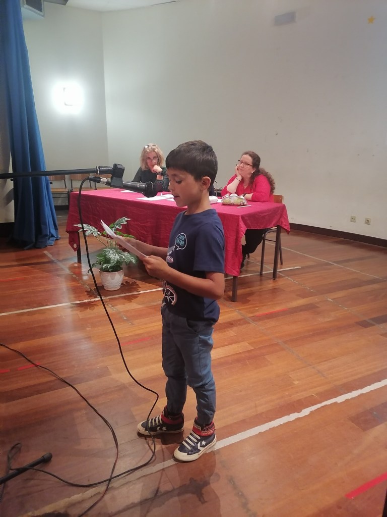 Realizou-se hoje, 31 de maio, a Final, do Concurso de Leitura/Gala dos Pequenos Leitores no Auditório da Escola Sede, para os alunos de 2º e 3º ciclos. A atividade, foi realizada em articulação com o grupo de Português. Foram finalistas quatro alunos de cada ano, que passaram em todas as fases, até à Final: