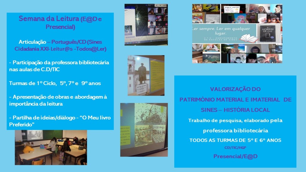 Património de Sines – Apresentação de trabalho de pesquisa sobre Património Material e Imaterial, realizado pela docente Bibliotecária, (monumentos, festas, romarias, usos costumes).