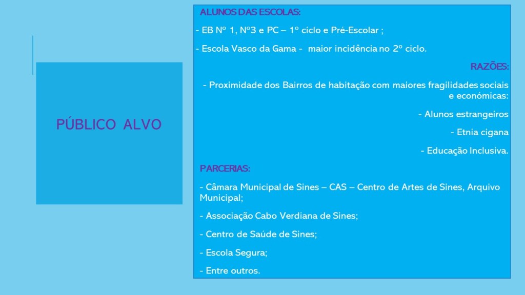 2º CICLO: Disciplinas de Português, DAC e Cidadania e Desenvolvimento; Ciências da Natureza…